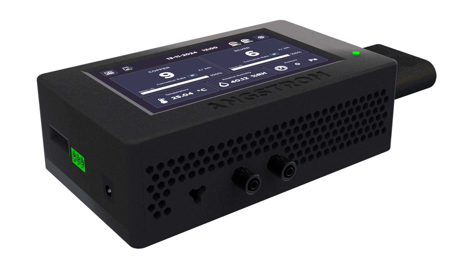 It is equipped with a 5" LCD high-resolution display. Silver and copper corrosion, temperature, humidity and pressure are plotted at different time intervals. In addition, layer deposition thickness and cumulative and incremental corrosion following ISA standards are available for display.